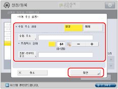 DNS 서버에 수동 주소를 등록하려면 <수동 주소 등록>에서 [설정]을 누릅니다.