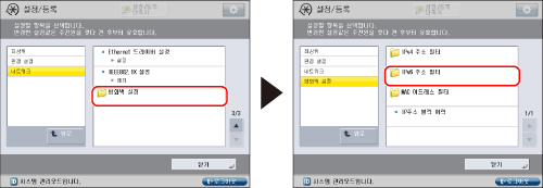 조작 패널을 사용하여 TCP/IPv6을 설정하는 절차에 대해 설명합니다. TCP/IPv4에 대한 설정을 지정한 후