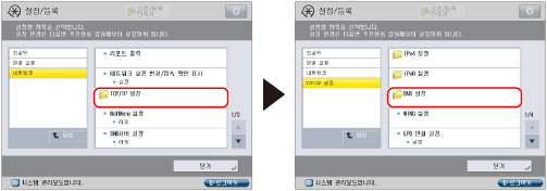 [TCP/IP 설정] → [IPv6 설정]을 누릅니다.