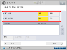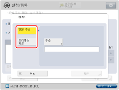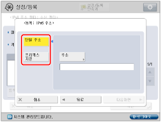 단일 IPv6 주소를 지정하려면: [단일 주소] → [주소]를 누르고 → IPv6 주소를 입력한 후 → [확인]을 누릅니다.