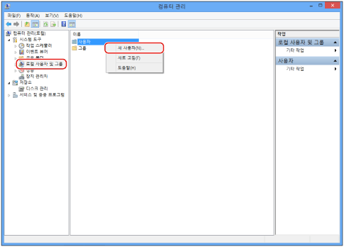 [사용자] 폴더를 마우스 오른쪽 클릭하고 → [새 사용자]를 클릭합니다.