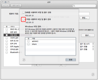 Mac OS X에서 FTP 서비스를 시작합니다.