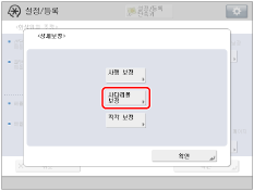 [환경 설정] → [용지 설정] → [용지종류의 관리설정]을 누릅니다.
