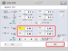 <화상위치 조정> 화면에서 <배율 (f)> 및 <배율 (d)>의 확대/축소 배율(%)을 설정하고 → [확인]을 누릅니다.