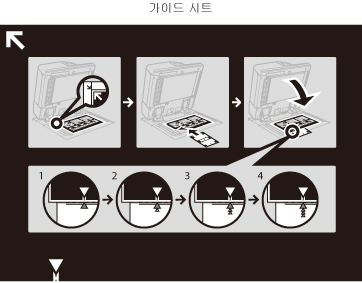 표시와 가이드 용지의 표시를 정렬하고 → [스캔시작]을 누릅니다.참고 |