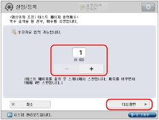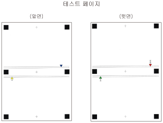 출력 테스트 페이지의 수가 많을수록 조정이 더 정확해 집니다. 여러 개의 출력 테스트 페이지를 지정하는 경우, 출력되는 순서대로 모든 테스트 페이지가 스캔되는지 확인하십시오. 순서가 바뀌거나 스캔 프로세스가 연속적으로 수행되지 않을 경우, 조정이 올바로 수행되지 않을 수도 있습니다. |