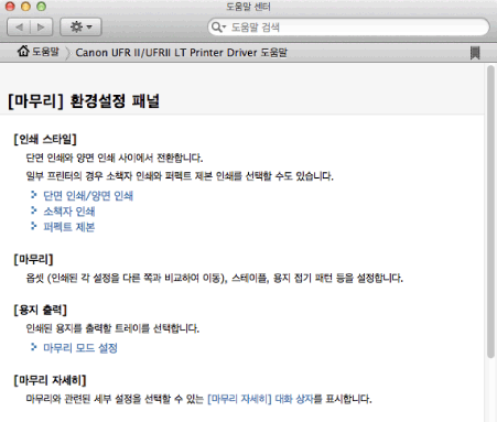 도움말에는 각 인쇄 옵션에 대한 추가 정보가 포함됩니다. 필요한 정보가 본 설명서에 나와 있지 않으면 도움말을 참고하십시오.