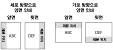 제본 위치가 용지의 짧은 가장자리인 경우: