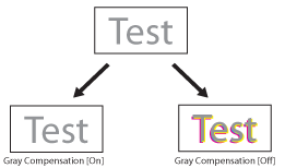흑백 및 회색 데이터가 네 가지(CMYK) 토너를 모두 사용하여 인쇄됩니다. [On]과 비교하여 어두운 부분의 계조가 향상됩니다.