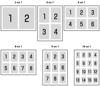 용지 한 면에 PDF 파일의 여러 페이지를 인쇄할 수 있습니다. 왼쪽 상단에서 오른쪽 방향으로 인쇄됩니다.