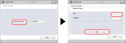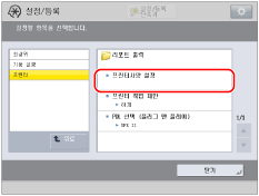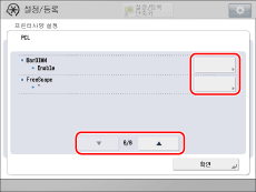 바코드를 인쇄하기 전에 바코드 인쇄 기능이 활성화되어야 합니다. [FreeScape]는 BarDIMM 메뉴를 활성화한 경우에만 표시됩니다. 바코드 인쇄 기능이 활성화된 경우 [BarDIMM] 및 [FreeScape]가 설정 페이지(설정/등록 화면에서)에 나타납니다. 터치 패널 화면 사용에 대한 자세한 내용은 "메뉴 기능"을 참고하십시오. 기기의 리모트 UI 기능을 사용하여 컴퓨터에서 설정을 지정할 수 있습니다. 자세한 내용은 "복사/인쇄 작업 관리"를 참고하십시오. 별표(*)는 기본 설정을 나타냅니다. |