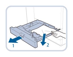 | 1. 손잡이를 잡고 움직이지 않을 때까지 용지 카세트를 잡아 당깁니다. |
