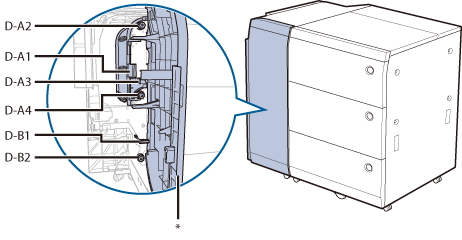 다이얼(D-B2)을 돌린 후 걸린 원고를 제거합니다.