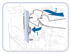 아래 설명된 절차와 함께 터치 패널 화면에 나타나는 용지 걸림 위치 및 지침에 따라 걸린 용지를 제거합니다.