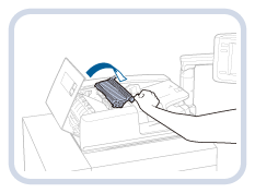 2. 걸린 원고를 모두 제거합니다.걸린 용지를 제거하는 데 어려움이 있는 경우 강제로 제거하려 하지 말고 3단계로 이동하십시오. |