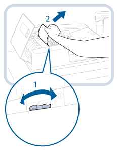 녹색 급지 다이얼을 돌린 후 걸린 원고를 제거합니다.