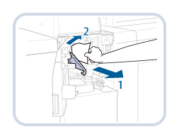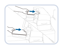 걸린 용지를 제거할 때 Document Insertion Unit-N1의 일부분이 피니셔에 방해가 될 수 있습니다. 피니셔에서 걸린 용지를 제거하기 전에 삽입 유니트를 들어 올리십시오. |