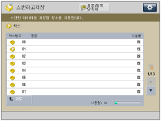 다음의 경우에는 박스에 파일을 저장할 수 없습니다. (수치는 남은 메모리 용량에 따라 달라질 수 있습니다.) 선택한 박스에 1,500개 이상의 파일을 저장할 때. 모든 박스에 1,500개 이상의 파일을 저장할 때. 모든 박스에 총 페이지가 약 6,000페이지인 파일을 저장할 때 남은 메모리 용량이 충분하지 않을 때 |