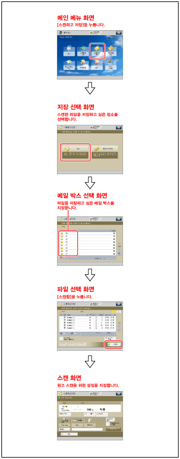 5 | [스캔함] 원고를 스캔해서 박스에 저장할 때 누릅니다. |