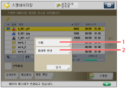 2 | [명칭] 파일을 이름별로 오름차순 또는 내림차순으로 정렬할 때 누릅니다. [날짜/시각] 파일을 날짜/시각별로 오름차순 또는 내림차순으로 정렬할 때 누릅니다. |