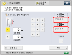 [자동]을 사용하여 감지할 수 없는 원고를 스캔할 때 스캔 크기를 수동으로 지정할 수 있습니다. 지정된 스캔 크기를 등록할 수도 있습니다.