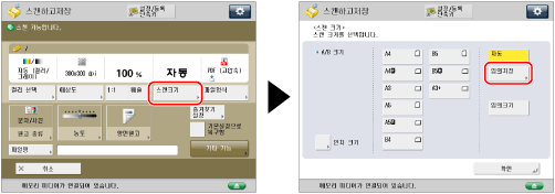 [스캔크기]를 누르고 → 스캔 크기를 선택합니다.