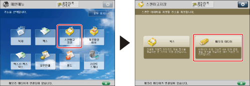→ [스캔하고 저장] → [메모리 미디어]를 누릅니다.