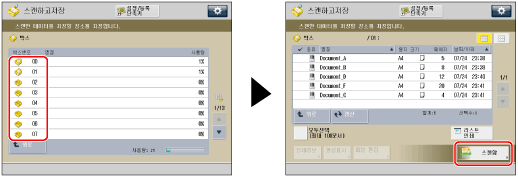 → [스캔하고 저장] → [박스]를 누릅니다.