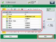 수신인을 선택하고 → [확인]을 누릅니다.