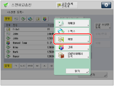 주소록 화면에서 [ㄱ], [ㄴㄷ] 및 [A~Z] 등과 같은 키를 누르면, 이름의 첫 번째 문자에 따라 수신인 리스트가 정렬됩니다. |