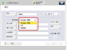 사용 가능한 프로토콜에 대한 자세한 내용은 "키보드를 사용하여 파일 서버 지정"을 참고하십시오. |