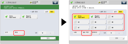 → [스캔하고 송신] → [즐겨찾기 설정]을 누릅니다.