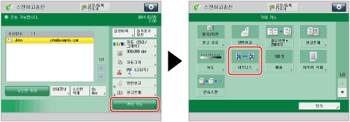 수신인을 지정하고 → [기타 기능]을 누르고 → [샤프니스]를 누릅니다.