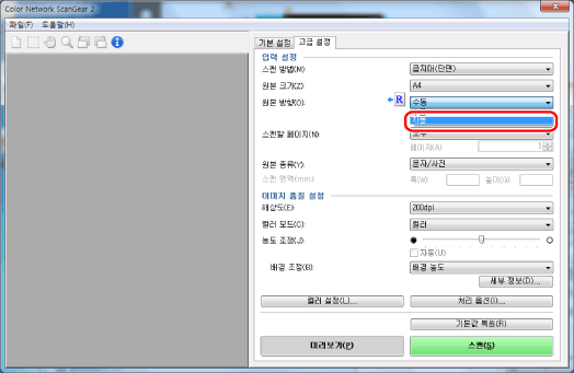 [고급 설정] 탭에서 [원고 방향]을 설정합니다.