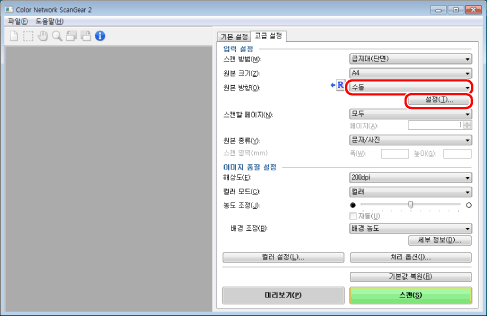 [수동]을 선택하고 → [설정]을 클릭합니다.