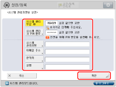 [시스템 관리자명]: | [시스템 관리자명]을 누르고 → 시스템 관리자 이름을 입력한 다음 → [확인]을 누릅니다. |
