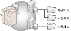 아래 절차는 개인 폴더를 위한 폴더 경로를 등록하고 각각의 사용자를 위한 인증 정보를 등록하는 방법을 설명합니다.