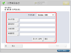 [스캔하고 송신] 기본 기능 화면, [저장파일 이용] 발송 화면 및 [팩스/I-팩스 박스] 발송 화면의  에서 사용자 정보를 등록할 수 있습니다. |