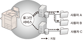 SMB 프로토콜만 사용할 수 있습니다. 로그인 서비스에서 수집한 개인 폴더에 관한 정보는 [호스트명] 및 [폴더 경로]에 표시됩니다. |