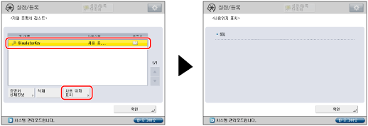 <사용상황>에 '사용 중...'이 표시된 키 페어는 IEEE802.1X 인증/IPSec와 함께 사용하거나 TLS가 '설정'으로 지정되어 있기 때문에 삭제할 수 없습니다. 키 페어를 위해 사용하고 있는 보안 유형을 확인하려면 [사용 위치 표시]를 누릅니다. TLS와 함께 사용 중인 키 페어만 삭제하려면 다음 설정을 '해제'로 지정합니다. IEEE802.1X 인증/IPSec을 위해 사용 중인 키 페어는 삭제할 수 없습니다. [리모트 UI]의 <TLS 사용> ("리모트 UI" 참고) [MEAP 설정]의 <TLS 사용> ("MEAP 설정" 참고) [IPP 인쇄 설정] 및 [부문별 ID 관리 PIN 번호 확인] ("TCP/IPv4 및 TCP/IPv6의 공통 설정" 참고) [이메일/I-팩스 설정]의 < SMTP 수신> ("이메일/I-팩스 설정" 참고) [기기정보 전달 설정]의 < 각 기능별 수신제한> ("전달처 등록/삭제/인쇄" 참고) |
