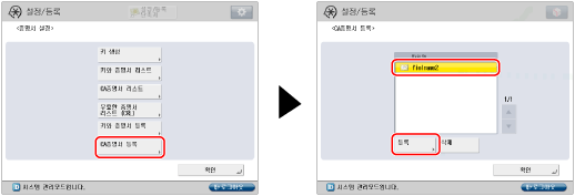 조작 패널을 사용하여 설치한 파일을 기기에 등록하는 절차는 다음과 같습니다: