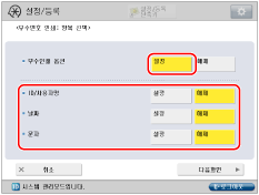 [부수번호 인쇄 옵션 설정] → <부수인쇄 옵션>에 대해 [설정] → 각 설정을 지정합니다.