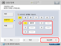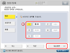 (숫자 키)를 사용하여 시작 시간을 입력하고 → [다음화면]을 누릅니다.