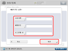 <전달측 설정>의 [MEAP 인증정보 설정]을 누르고 → 다음 설정을 지정하고 → [확인]을 누릅니다.
