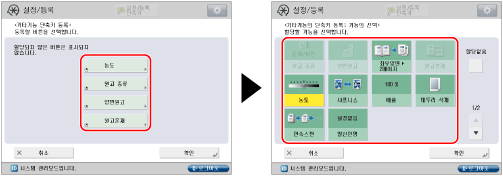 [기능 설정] → [송신] → [팩스설정]을 누릅니다.