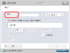번호 끝에 포즈를 입력한 경우 포즈의 길이는 항상 10초입니다. F코드, 비밀번호, ECM 송신, 송신 속도 및 국제 송신을 설정할 때 [상세설정]을 누릅니다. 여러 회선 사용으로 설정된 경우, 송신할 때 회선을 선택할 수 있습니다. |