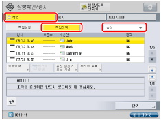I-팩스 문서의 전달 상태를 알려 주는 확인 메시지를 수신하려면 수신 기기에 I-팩스 기능이 있고 Full 모드와 호환되어야 합니다. Full 모드를 지원하지 않는 기기로 Full 모드로 문서를 송신하면 전달을 완료하였는지 확인할 수 없습니다. 위와 같이 실제로 문서 송신이 완료되었다고 해도 관련 작업은 완료되지 않은 것으로 간주됩니다. [기능 설정]의 [이메일/I-팩스 설정]에서 [풀 모드 송신 타임아웃]으로 설정한 시간이 경과할 때까지 이러한 작업은 작업 상황 화면에 <송신결과 대기 중입니다.>로 나타납니다. [풀 모드 송신 타임아웃]으로 설정된 시간이 경과되면 작업은 작업이력으로 이동하고, 서버 또는 다른 수신인으로의 문서 송신을 확인할 수 없으면 <->로 결과가 나타납니다. ("풀 모드 송신 타임아웃" 참고) → [작업] → [작업이력] → [송신]을 눌러 문서의 전달 상태를 확인할 수 있습니다. 문서가 성공적으로 수신되면 [OK]가 나타나고, 송신에 실패하면 [NG]가 나타나고, 결과를 확인할 수 없으면 [--]가 나타납니다. 단순 모드에서는 배달 확인을 할 수 없으며, 제대로 배달되더라도 [--]가 나타납니다.![]() |