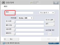 [환경 설정](설정/등록)에서 [표시언어/키보드 전환]을 '설정'으로 지정하면 호스트 이름 및 폴더 경로가 올바르게 표시되지 않을 수도 있으며 찾아볼 수 없을 수도 있습니다. |