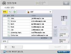 검색 기준을 지정하지 않고 [검색시작]을 누르면 LDAP 서버에 저장된 모든 주소가 표시됩니다. |