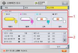 1 | 토너 정보 각 컬러 토너의 잔량을 빠르게 확인할 수 있습니다. |